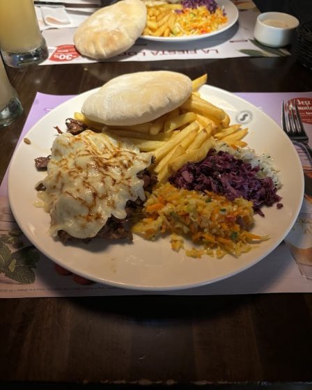 roasted chicken breast, fries or rice, side salads, pita bunStandard / XL: 3 sauces. Small: 1 sauce.